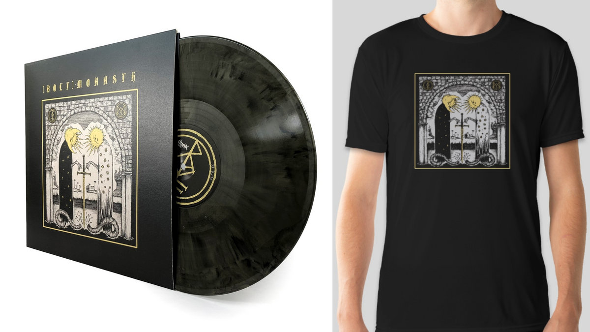 Bundle including the Vinyl LP and a limited edition shirt with the cover artwork by hagiophobic as two colour silkscreen print on Gildan Softstyle at a reduced price.